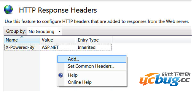 打开Internet Information Services (IIS) Manager,如图双击HTTP响应头部(HTTPResponse Headers),