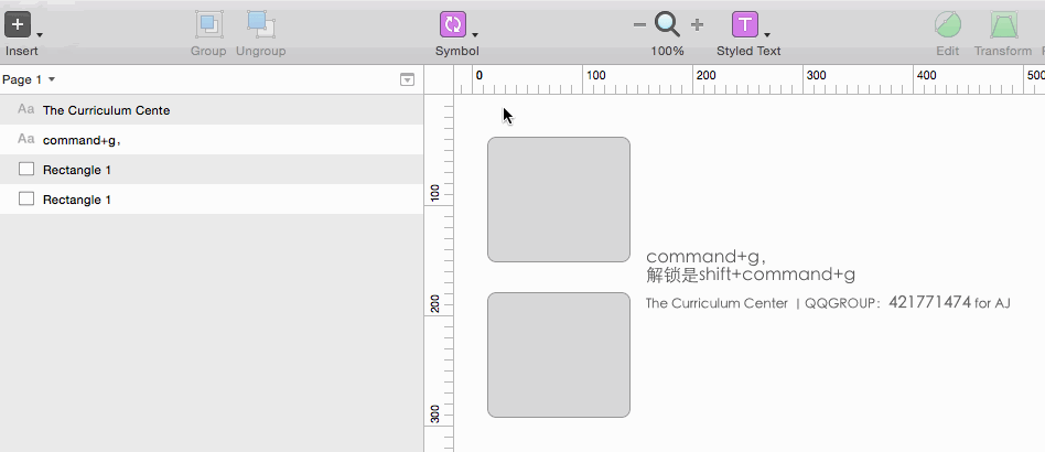 3.组合和接触组合,这个不用多少了市面上多数的软件都是command+g,解锁是shift+command+g