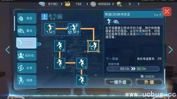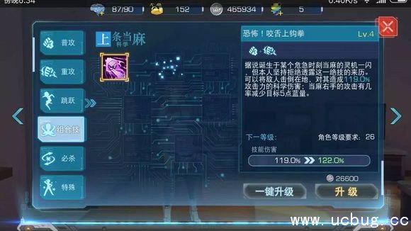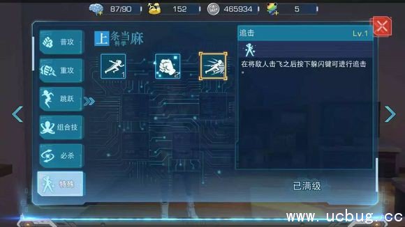 普攻→重攻可释放组合技上勾拳造成客观的科学伤害,击中后使敌人浮空,浮空后可追加“追击连招”。