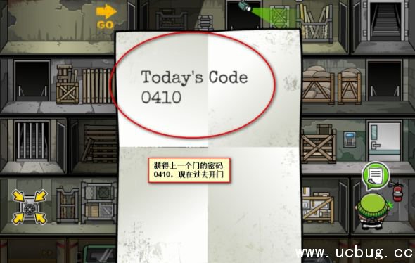 走到楼下发现右边有一个纸条,走过去即可获取密码。