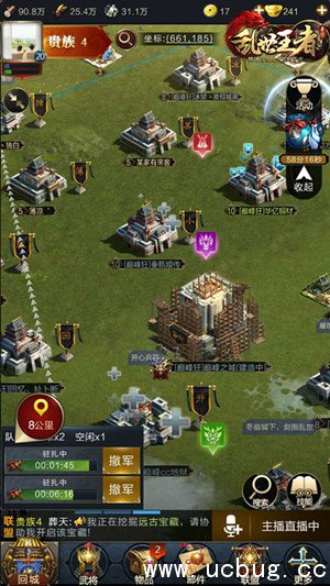 乱世王者中有特殊的联盟堡垒建筑,该建筑周围的大范围以内联盟所有盟友都能获得巨大的采集速度、生产速度等加成!所以游戏中的联盟往往是一群城池聚集在一起!这样盟友之间互相帮助更加方便,也可以共同抵御来犯之敌!但是,这里要提醒各位主公,游戏中的联盟城堡范围之内往往是战争多发地区!