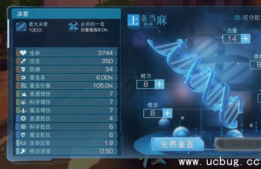 力量:影响角色的攻击和属性伤害(普通/魔法/科学)