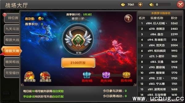 1.每日前10场比赛可额外获得战功奖励,系统还会根据玩家段位每日发放战功奖励。