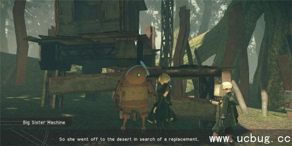 step1.从村庄领袖Pascal附近的梯子落到地面与大姐姐机器人对话,她表示她的妹妹失踪了希望2B可以帮忙在沙漠中找到其妹妹。