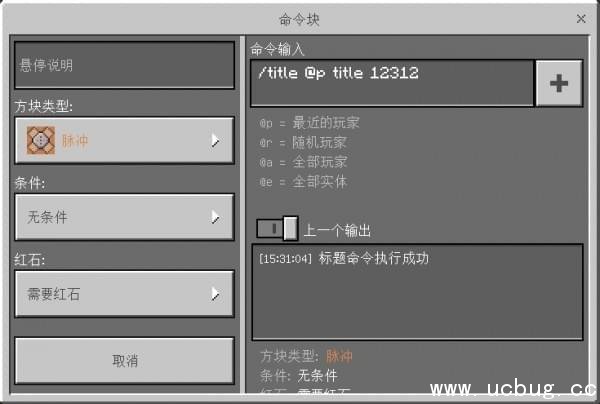 大家如果用多个命令方块的话,记得中间添加点中继器,如果两个放在一起用链命令方块的话,会直接覆盖前一个字幕