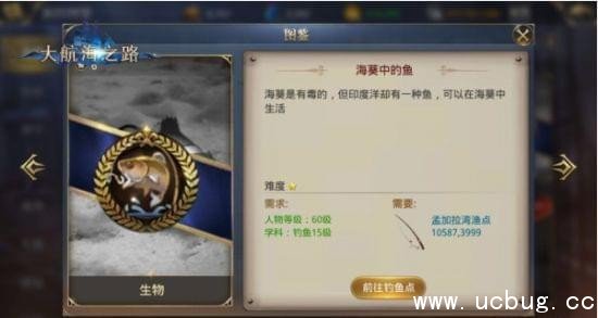要求人物等级60级,钓鱼15级,位于孟加拉湾海渔点。