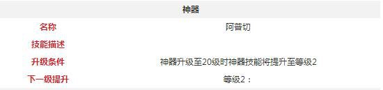 技能描述:神器升级至20级时神器技能将提升至等级2