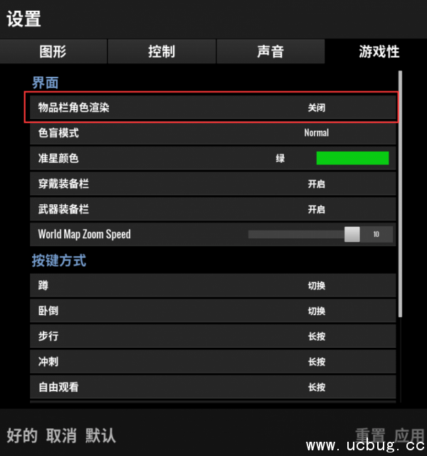 很简单,只需要将“游戏性”中的“物品栏角色渲染”关闭即可。