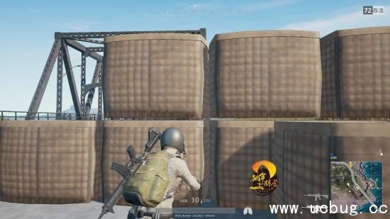 或者在箱子这里,不过值得注意的是,这个箱子上下中间是有缝的,如果是站立状态,对方狙击手是有可能透过缝隙将你击杀。