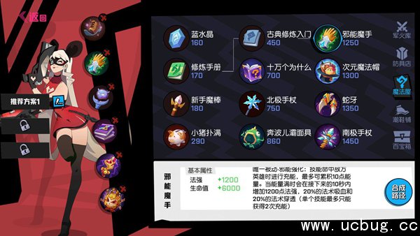 第二件:邪能魔手。每层技能叠加2层被动,10层之后加1200点法强和20%吸血和20%法穿,本身加1200法强和6000生命值,又硬又有输出,而且基本可以和被动完美配合,越打越猛的典型装备,强力推荐。