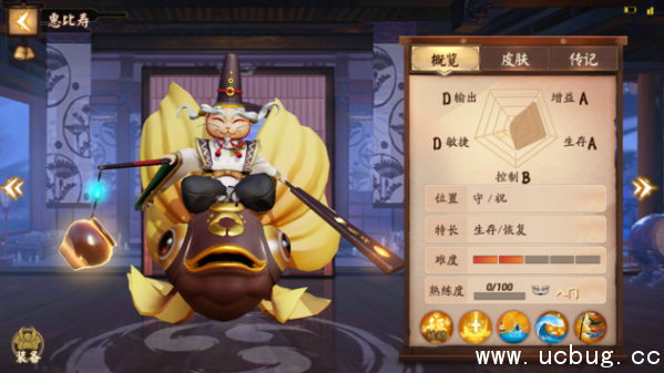决战平安京里的惠比寿老爷爷依旧是一个奶水充足的角色,能够为其他队友带来生命续航