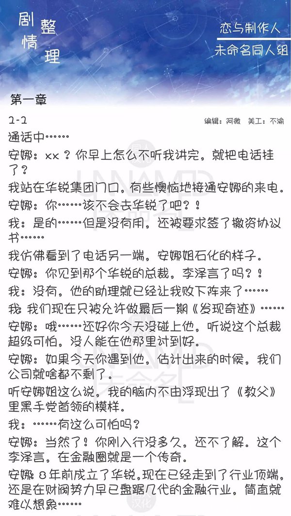 恋与制作人的剧情是非常精彩的,就如一部都市言情小说,斜杠小编对恋与制作人的剧情进行了整理,下面来看看吧。