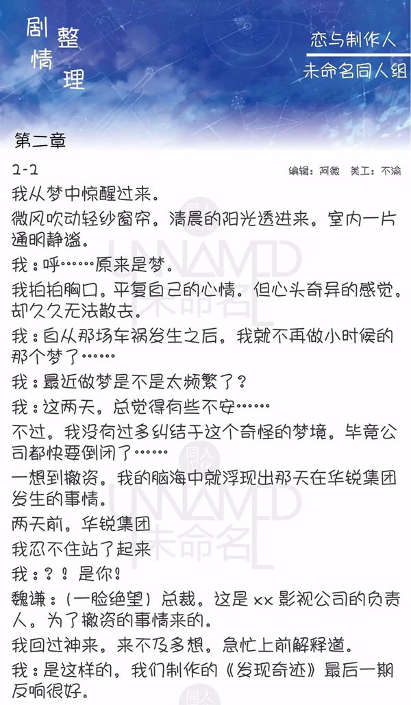 恋与制作人的剧情是非常精彩的,就如一部都市言情小说,斜杠小编对恋与制作人的剧情进行了整理,下面来看看吧。
