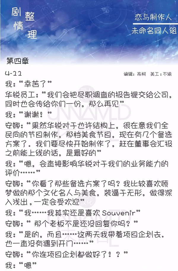 恋与制作人的剧情是非常精彩的,就如一部都市言情小说,斜杠小编对恋与制作人的剧情进行了整理,下面来看看吧。