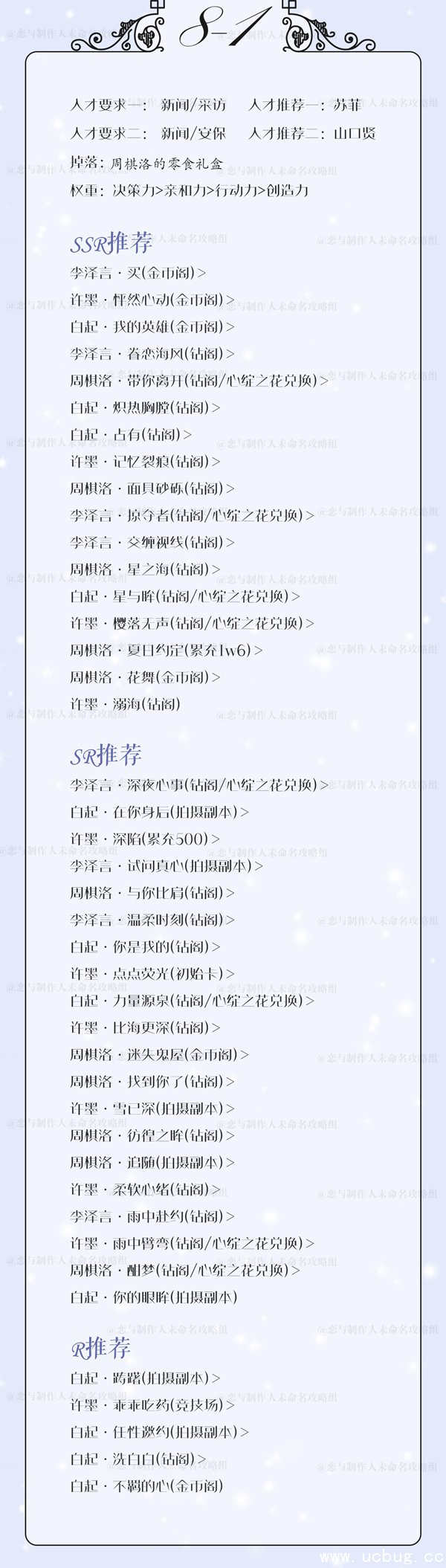 下面斜杠小编将给大家带来恋与制作人精英8-1三星攻略。
