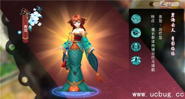 技能“飞鸾翔风”作为主动技能,可以治疗己方四名队友,并附加持续回血状态三回合。