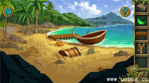 拿到地图后下坡,收集沙滩上的绿色珠子(就地上最绿的那个),沙滩城堡里的盒子,船上的弹弓