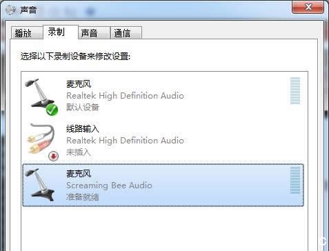 当然,如果你不在系统如此设置,也是可以的。在系统中把录音设备设为“Screaming Bee Audio”,可以让MorphVox的变声效果覆盖系统全局。