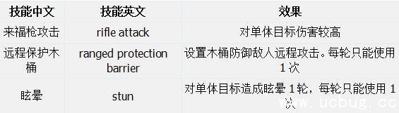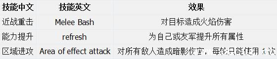 他的技能如下: