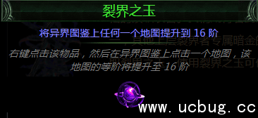击败他们,流放者!夺取属于你丰厚的奖励和全新的异界专属暗金。这些强大的上层裂界暗金将会是众目所归的顶级装备。我们期待看到围绕着这些顶级暗金设计出的新BD。左边就是上层裂界者掉落的专属暗金之一,其他上层裂界者专属暗金的威力也可想而知。当你获取 15 片记忆碎片时,可以进入塑界者的实验室,获取裂界之玉。使用裂界之玉可使任何地图升至 16 阶。