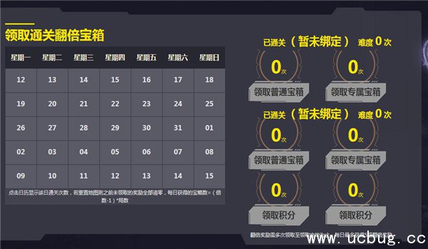 2.点击日历显示该日通关次数,若重置地图则之前未领取的奖励全部清零,每日获得的宝箱数=(倍数-1)*局数