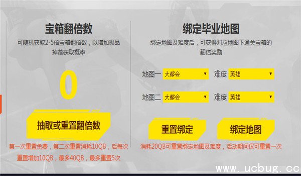 1.第一次重置免费,第二次重置消耗10QB,后每次重置增加10QB,最多40QB,最多重置5次,消耗20QB可重置绑定地图及难度,活动期间仅可重置一次