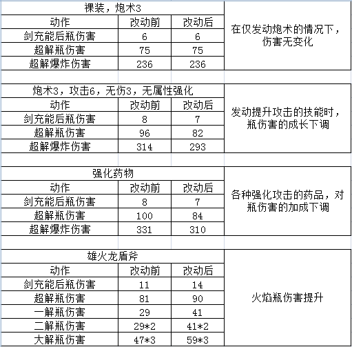 属性瓶的伤害明显加强了,但是官方预告的超解瓶爆炸伤害变得更加集中,这一点倒不是很明显,超解范围还是比较大,看来还是有待开发吧。