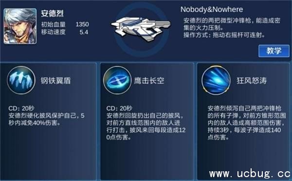 安德烈倾泻自己两把冲锋枪内的所有弹药,对前方扇形范围内的敌人造成多轮高额范围伤害持续3秒,每轮子弹造成140点伤害。