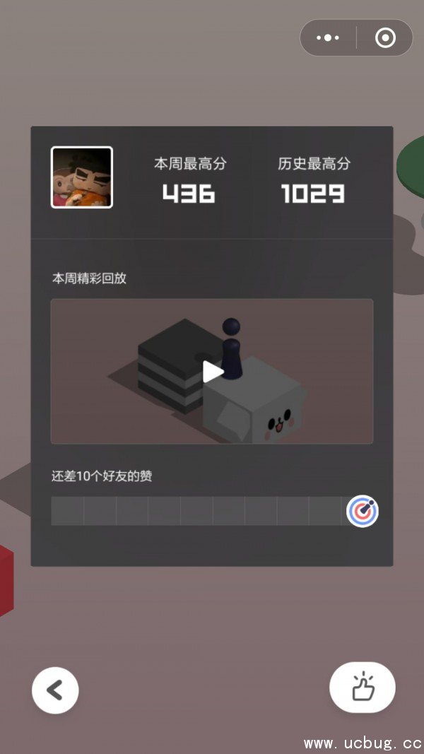 此次还在游戏中加入了小道具,小道具和新皮肤一样需要解锁才能够使用,主要功能是帮助玩家跳到基座的中心点,但只有一次使用机会。优化后的跳一跳排行榜,可以点击用户头像查看精彩回放,用户同时可以给好友点赞,获得一定点赞即可得到小道具。