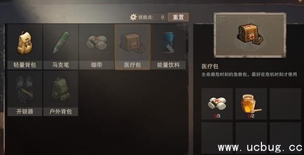 2、绷带,医疗包都可以加血,分别是26级和32级解锁,所需材料是,麻布和蜂蜜。