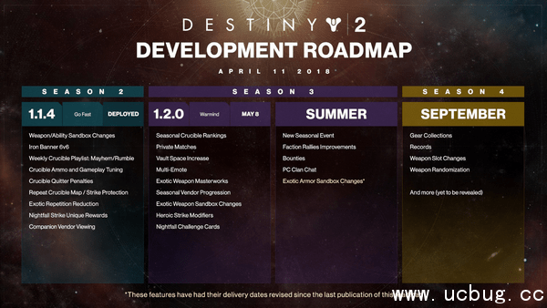 公布扩展包信息的同时,Bungie 还放出了游戏后续的更新和开发计划表。