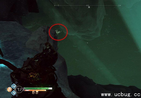 在诺伦三女神宝箱往左跳,就在附近停留着