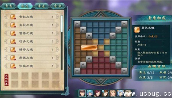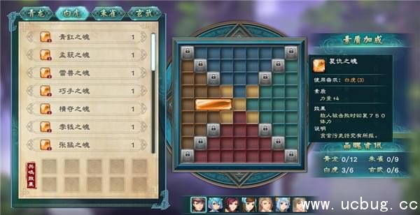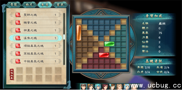 “晶魄”分为“青龙”、“白虎”、“朱雀”、“玄武”四大体系,用不同的颜色来加以区分,每个体系都对应不同的能力加成领域,“晶魄盘”也是一样。“晶魄”只能嵌入对应体系的“晶魄盘”中,不同体系之间无法兼容。值得注意的是,只有在“晶魄盘”容量富余,并且体系对应的情况下镶嵌才能够生效。