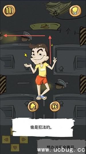 离开过程中不要带走屏幕上方的钱币,否则你将涉嫌犯法,不能过关了。