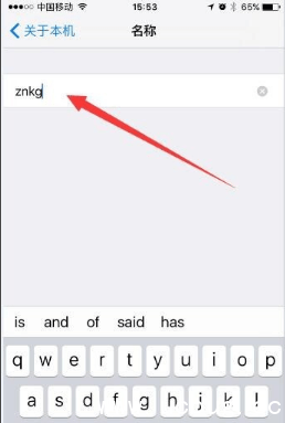 进入“名称”界面,将iPhone6修改成znkg,即可设置成功。