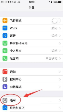 返回“设置”主界面,点击“通用”;