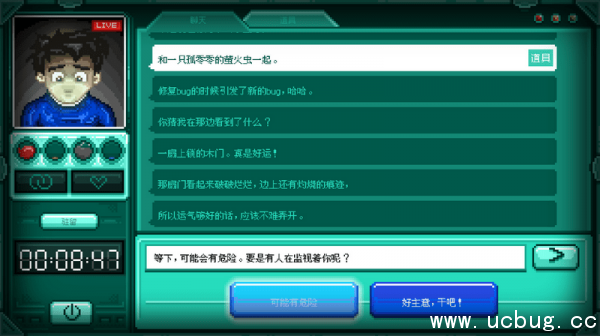 游戏中的进程会遵循实时模式,这意味着你离开游戏的每一秒钟奎恩都会独自度过。中断对话过久,或者任凭奎恩独自承受一切,会产生蝴蝶效应。而且玩家与奎恩的互动至关重要,通过引导向他证明你是一位可靠的伙伴,让他学着信任你,和你分享他的发现和内心最深处的感受。如果你做不到,令他的情绪失控,会让他对你产生抗拒和抵触。