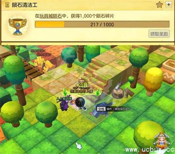 在地图玩具城陨石中,对着积木形状的方块按空格,达到一定次数也有成就哦。