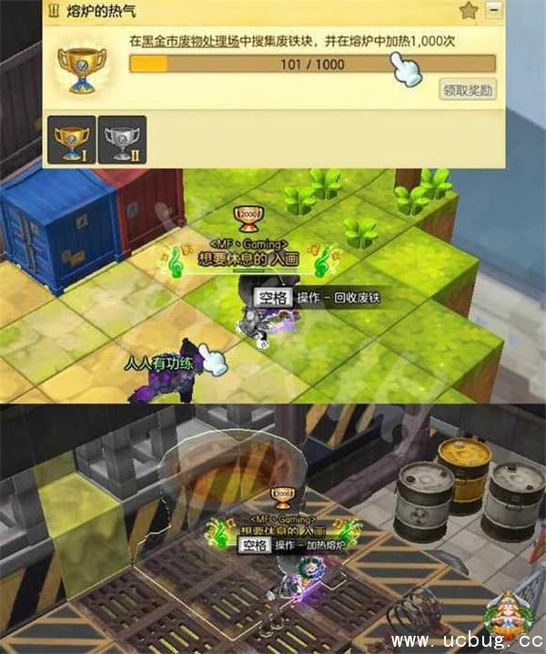 需要玩家对着铁管状的道具进行调查,获得废铁块道具(可以交易)后在熔炉前进行加工。