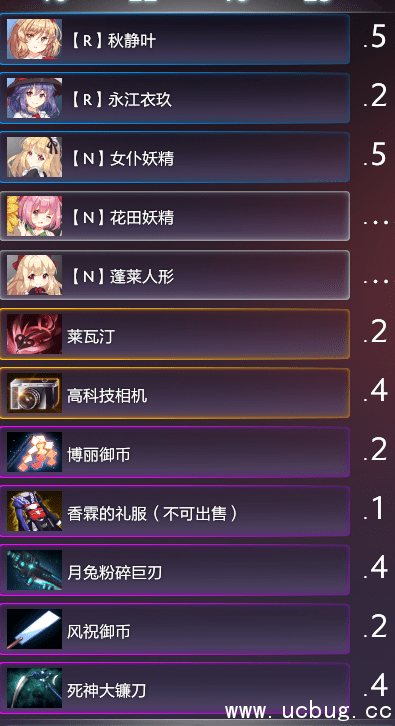 五星:八意永琳(五培养)、射命丸文(五培养)、蓬莱山辉夜