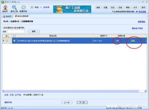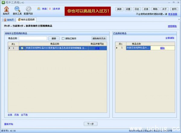 5、进入下一步后,就是选择父分类下的要制作视频的宝贝,整店制作点击“全选”,再次进入下一步。