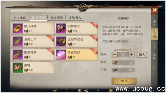官员商城:仅限官员购买,不同官员可采购和官职特权相关的道具
