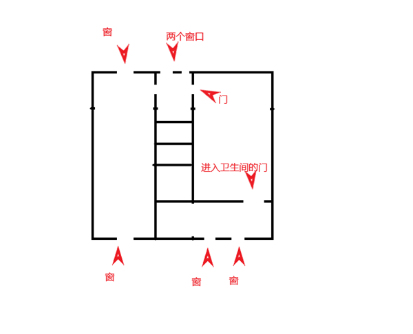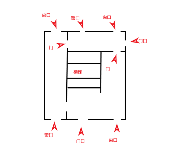 从平面图能看出你打开门就是楼梯,左边是一扇门,这扇门是那种不能关的门,当二楼有人的时候,你进来之后直接往左或者往右走,这样不会第一时间被二楼的人秒。左边是一条小长廊,前后两头是两个窗口,都是可以翻的窗口,这条走廊一般会刷物资,大部分的时候都会有药。