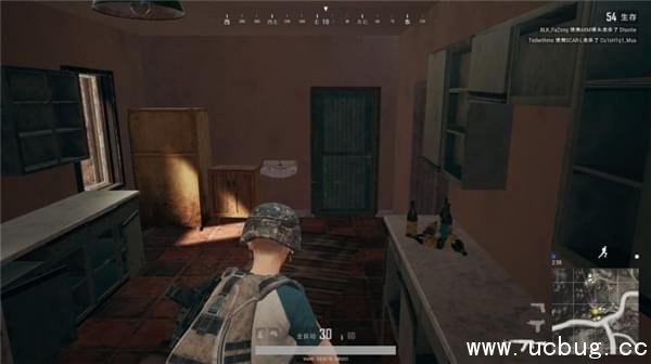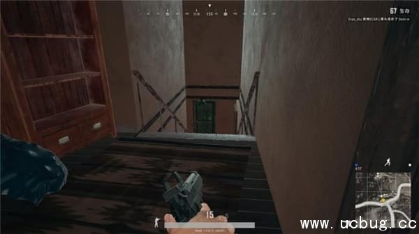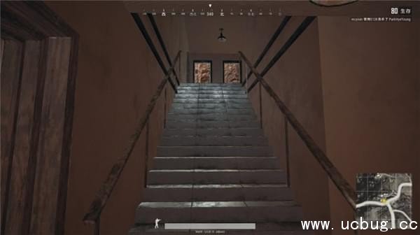 上了二楼之后,左转是一个小房间,这里边一般都会刷些物资,这里边也是两扇窗相对,可以观察房子外围的情况。而你可以卡住这条楼梯,就像海岛图中的无敌楼一样,通过卡视角观察楼下开门进来的人,方便自己拥有先手射击的机会,这也是我管它叫沙漠无敌楼的原因。
