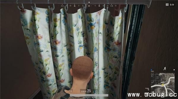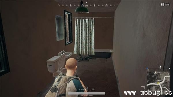 这个点就是卫生间浴缸上边,这个点非常隐蔽,当人攻上来,你用拳头把玻璃打破,然后跑到这里来,敌人跑到卫生间的时候会以为你翻下去了,这时候探出身子来攻击他。而且最重要的一点,当有人从楼下扔雷的时候,你躲到这里来雷会炸不到你!