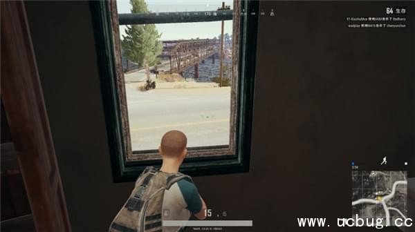 卫生间里边也会刷些物资,有时候会特别肥。这里边有两扇窗,方便观察楼下的情况,这个窗口也是可以翻下去的,当有人攻上来,你对自己枪法不自信的情况下可以翻下去,当然,对自己枪法自信的话,可以卡住卫生间的这扇小门,敌人进来的时候可以先手。也要小心楼下灌雷。
