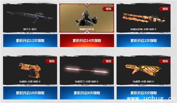 3.即可开启对应限时返场好礼并获得1个道具,最多可开启6次,获得全部6个锁定选择的道具。换肤卡/武器挂饰/BOSS角色为唯一道具,请不要选择游戏内已拥有的内容!