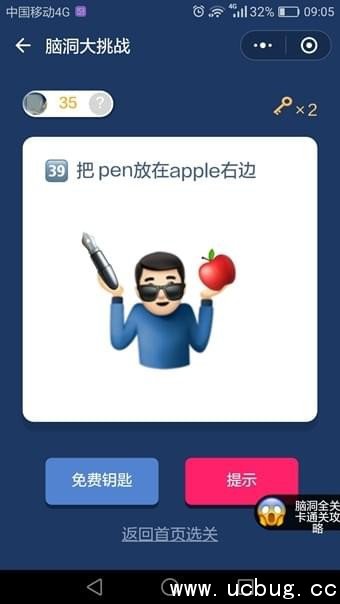 把pen放在apple右边,下面斜杠小编将给大家带来脑洞大挑战第38关答案。