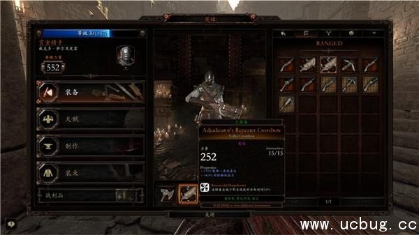 远程武器当然是连弩,洗出暴击回2弹药的特质,再加上穿刺属性,对付鼠潮效果很不错,当然了友军伤害也非常高,脆皮队友挨2次3发齐射就会躺地。