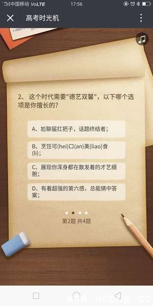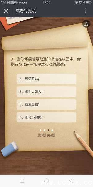时光机一共有4道题,小伙伴根据选择不同会得到不同的结果。以上全部题目全部选择D,你就会被蓝翔技师学院录取了。